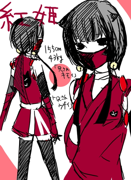 紅姫(忍者ver.): 寡黙、冷静沈着で洞察力が長けており、まさに忍の鏡だが、虫を見ると、猫の性ゆえか、任務を放って遊んでしまう。兄的存在である紅坊のことを「兄さん」と呼ぶ。しかし兄の雪崇拝にどん引きで「兄さんキモイ」といつも罵っている。一人称は「私」