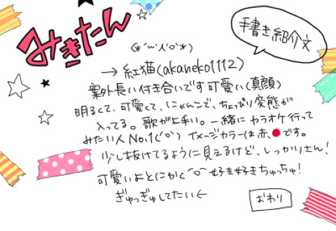みにみき、と手書き紹介文をねろろからいただきました~///